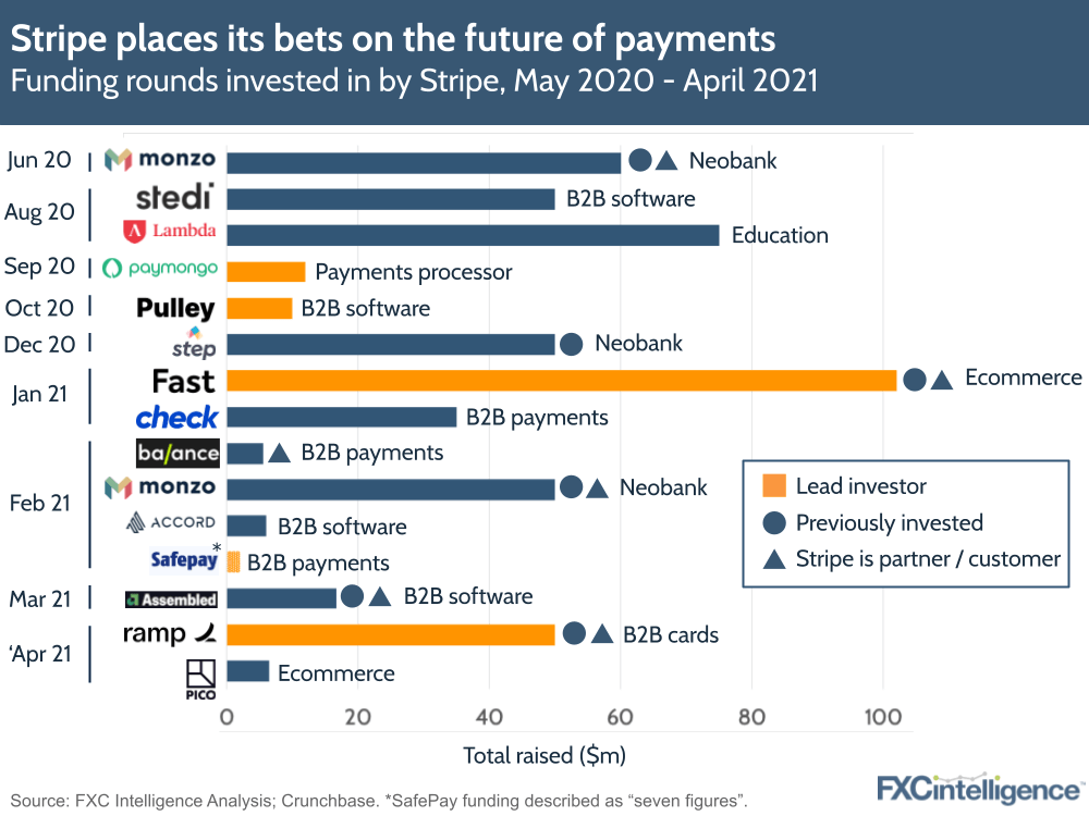 Payment processor Stripe officially became the US’s most valuable startup in March, with a funding round that saw its valuation climb to $95bn. But while it is raising millions, it is also making a host of investments in other companies as it grows.