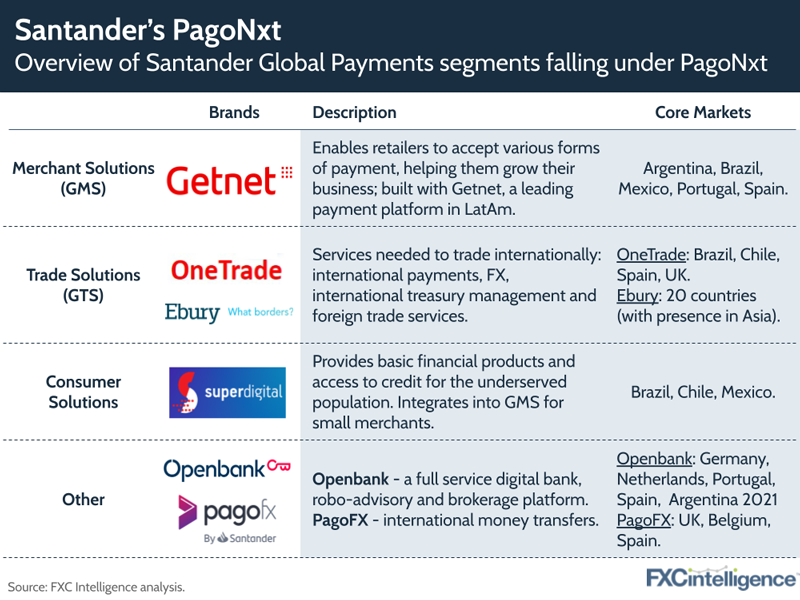 Over the past couple of years, Santander has embarked on a digital transformation journey, most recently with the creation of PagoNxt. Designed to bring Santander’s cross-border-focused businesses under one umbrella, PagoNxt is intended to be a “global payments company”.