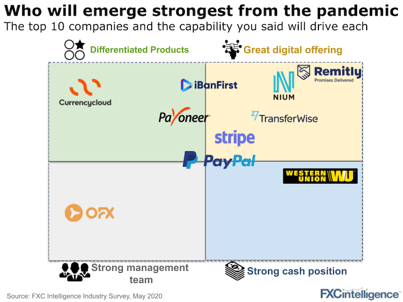 This week we look at the results from our industry survey. We asked you which companies you thought would emerge strongest from the crisis in one year and why. TransferWise was the winner in terms of votes…let’s dig deeper in the results.