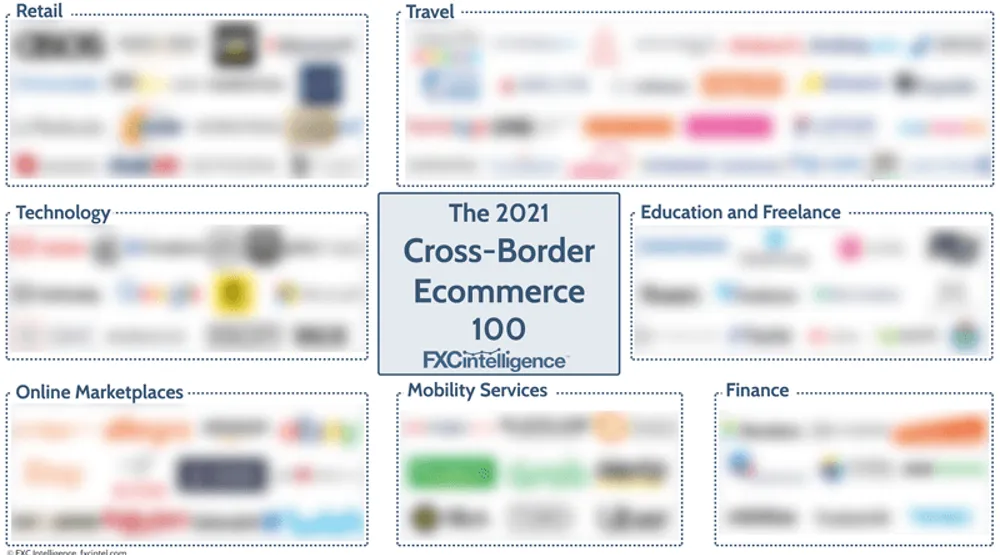 FXC Intelligence’s 2021 Cross-border Ecommerce Top 100 list includes what we consider the largest players in the world that fulfill cross-border customers with goods and/or services (ranked by estimated fraction of revenue linked to cross-border activity by sector).