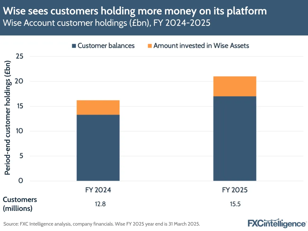 More than just a transactional service, Wise is increasingly seeing customers looking to hold money on its platform ready to pay or convert to other currencies, which is deepening their engagement with the company.