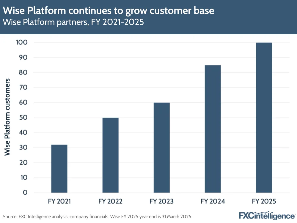 Wise expects in the medium term that Wise Platform will grow to reach approximately 10% of the company’s FX volumes, up from 4% today (which would be around £5.8bn, based on preliminary FY 2025 results). However, Wise Platform’s MD Steve Naudé said that ultimately the company expects it will account for the majority of volumes as it seeks to integrate Wise’s infrastructure with tools that customers are already using at Tier 1 and Tier 2 banks.