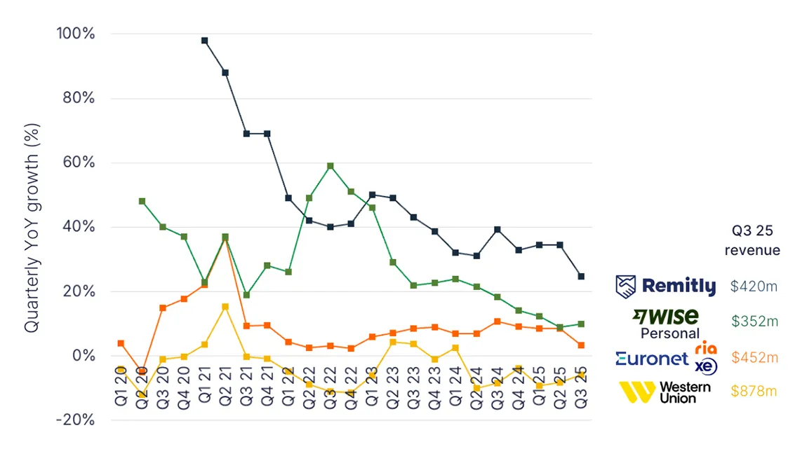 Cross-border volume surged 23% YoY to £145.2bn in FY 2025, driving 6% cross-border revenue growth, though the company has also continued to significantly lower prices and drive up its transaction speeds. It has also seen significant growth across many of the non-cross-border elements of its business, namely its account, card and assets-based products.