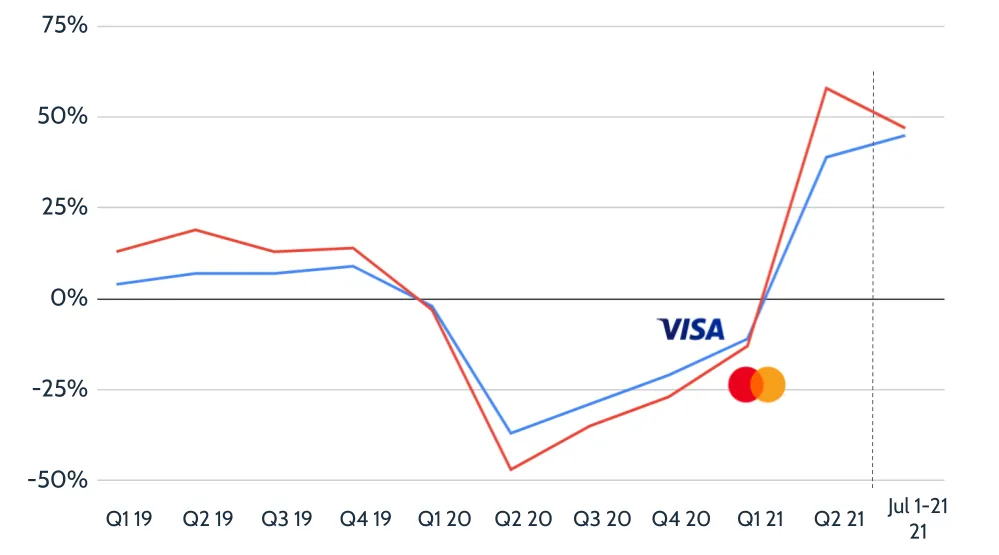 Visa and Mastercard rebound, but travel lags in Q3 2021