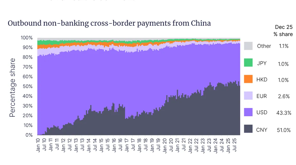 Monthly data published by China’s State Administration of Foreign Exchange on outbound and inbound non-bank cross-border payments shows that use of the yuan has climbed significantly over the past few years, and now accounts for the majority of transactions in both directions.