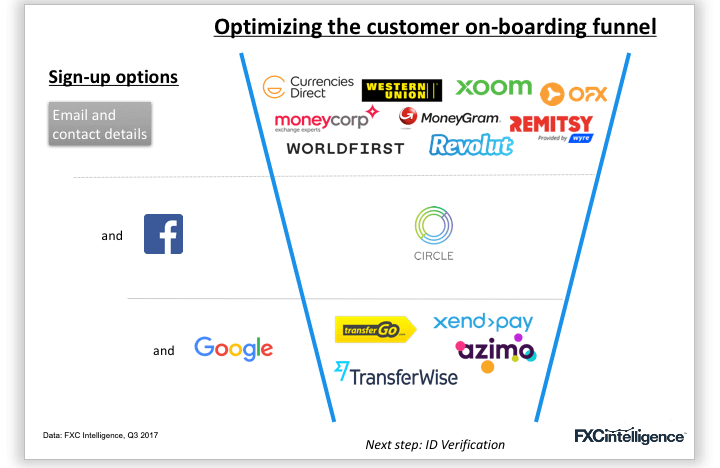 All payment companies have to deal with the same tough compliance rules that constrain customer acquisition funnels. But when it comes to on-boarding new users, some companies make the first step much easier than others. Below we’ve mapped out the options users have when creating an initial online account with a range of leading with providers.