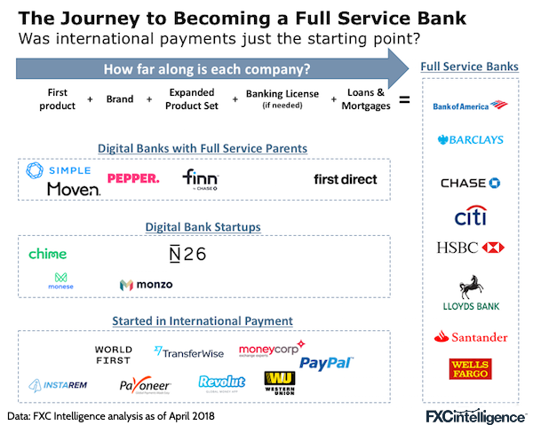 They started from very different places but are the goals now the same? Are the biggest competitors to the best funded payment companies now digital banks?