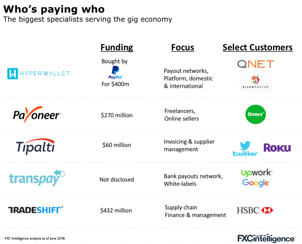 In turn, the expansion of gig platforms into international markets and the outsourcing of research and data tasks has created greater demand for international mass payment solutions. And because many of these platforms prioritise payment reliability and accuracy over FX cost, many international payment companies have sensed a lucrative opportunity.