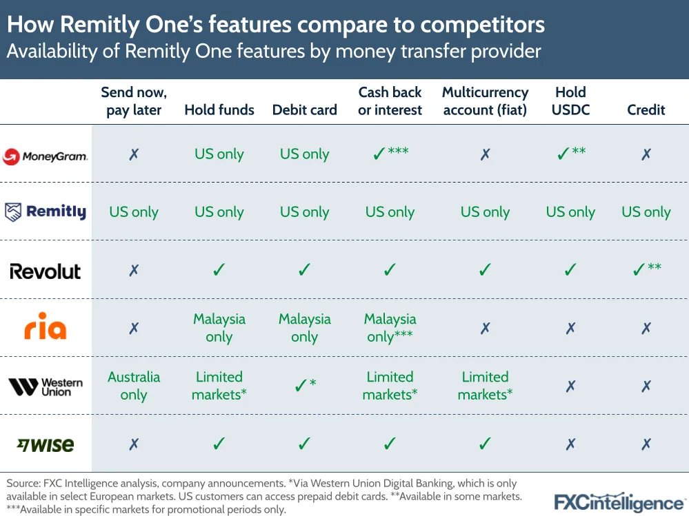 In terms of product range, while every major competitor offers at least one of the products within the Remitly One umbrella, no other major players offer all of the solutions, with neobank Revolut, which typically targets a different customer profile to Remitly, being the closest.