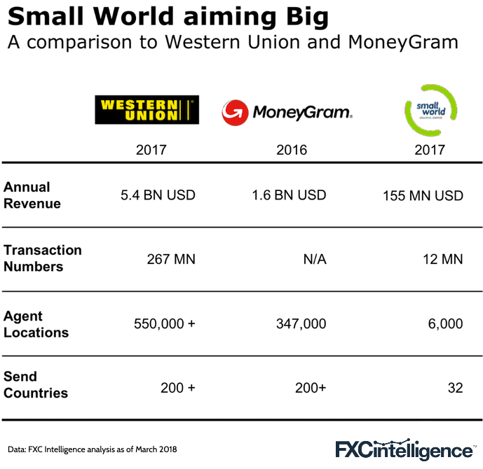 Small World had several attractive features for a private equity buyer. First, the company, whilst small compared to Western Union and MoneyGram, is big enough to provide a base from which to build. Second, it has a strong enough base in the often forgotten or dismissed offline cash world, which still accounts for a significant part of the global remittance market.
