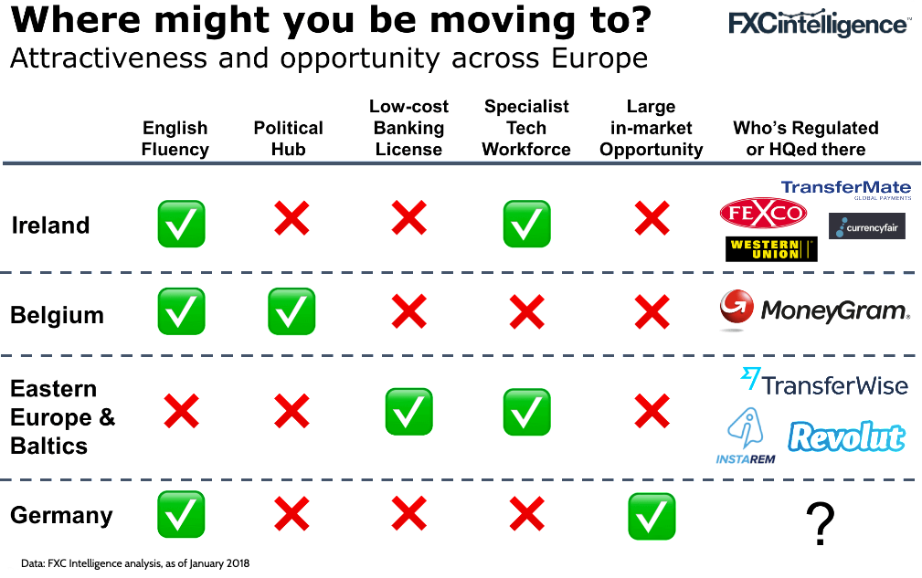 Due to continuing Brexit uncertainty and concerns over UK financial passporting rights into Europe, payment companies are having to decide whether they need to pick up sticks and move. Not a small decision.