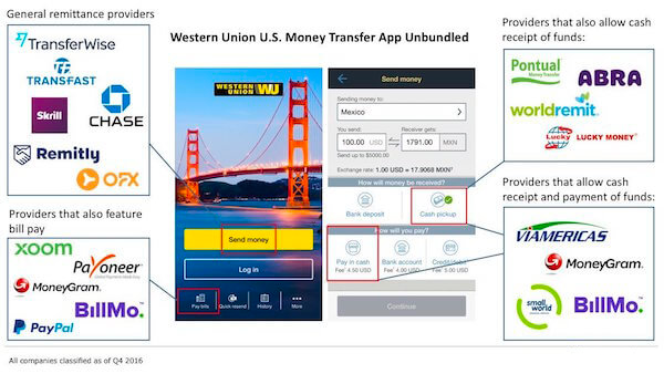 One of Western Union’s greatest edges is also perhaps its most old-fashioned attribute. The ability to send money to live tellers ensures that Western Union can still have a large part of the unbanked market. Whether this advantage will continue for Western Union remains to be seen. Some of the newer money transfer challengers have been quick to embrace unbanked customers, with newer companies such as Abra and BillMo understanding that the live teller is still critical to customer acquisition.
