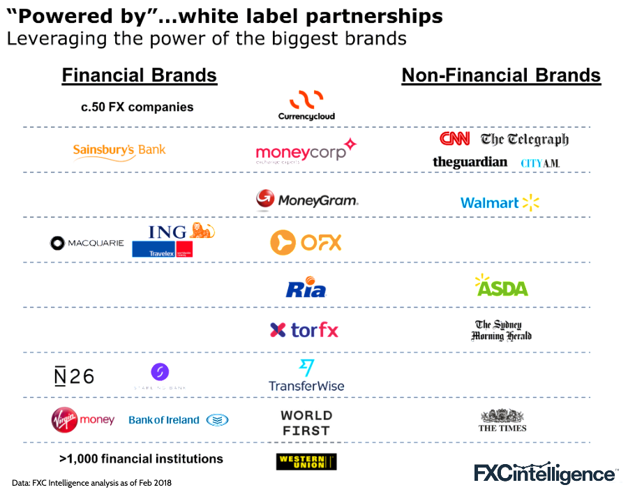 Two key factors explain why only a small number of the world’s major brands have white-labelled FX services (think how many global newspapers aren’t listed or banks not shown above).