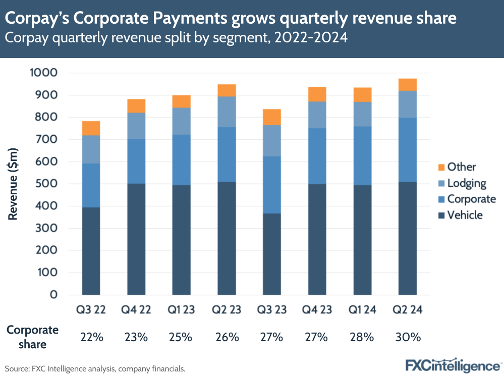 In addition to seeing 17% revenue growth to $288.5m, the Corporate Payments division EBITDA rose 24% to $141.3m, for a margin of 49% (up from 46% in Q2 2023).