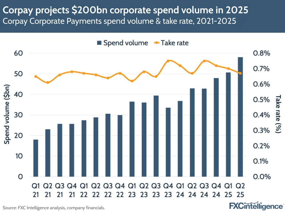 Corpay saw strong growth in Q2 2025, with topline revenue up 13% to $1.1bn, driven by strong growth in the company’s Corporate Payments segment. The B2B payments provider also gave more details on its $2.2bn acquisition of B2B FX provider Alpha Group, which is set to further cement payments as its key growth vehicle moving forward.