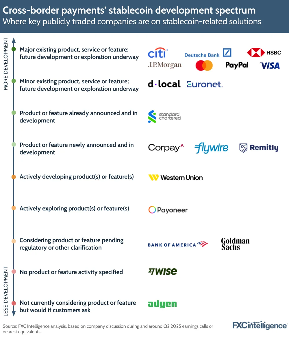 Cross-border payments has seen surging interest in stablecoins over the past few months, but how have public companies responded? We review the earnings calls of key players from across the industry to find out.