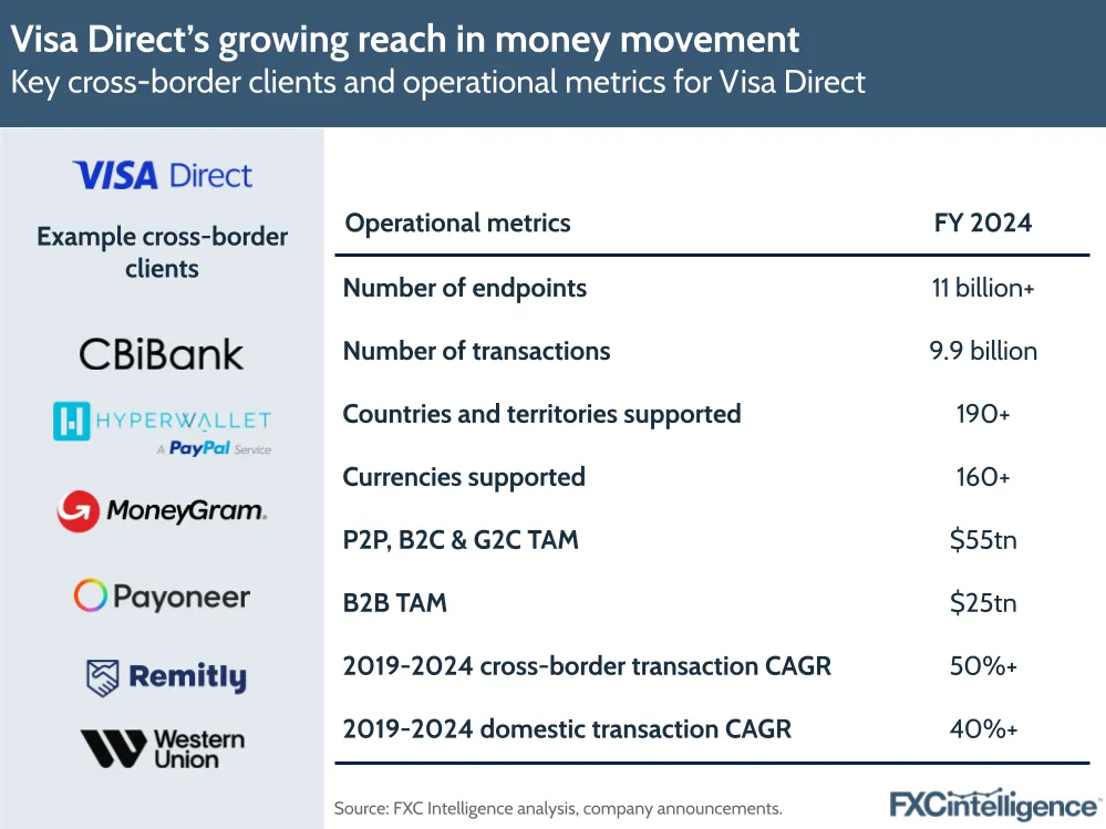 Visa’s B2B2X solution Visa Direct is a critical part of money movement in the cross-border payments space. Providing card and non-card rails that underpin P2P, B2B, B2C and government-to-consumer (G2C) payments and beyond, the brand processed 3.3 billion transactions in Q3 2025 alone, and is on course to pass 12 billion in FY 2025.