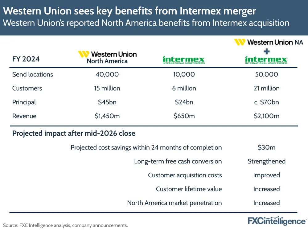 Western Union anticipates achieving annual run-rate cost synergies of around $30m within two years of the deal closing, which is currently set for mid 2026.