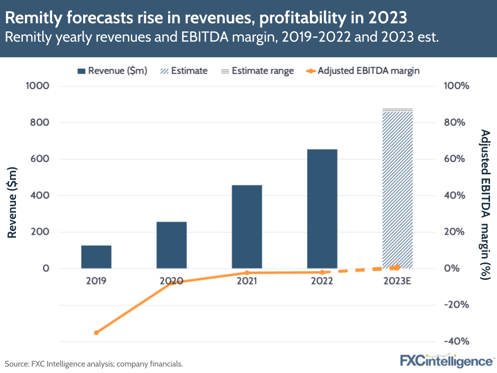 Remitly closed its 2022 with another solid quarter, in which it saw revenue rise 41% to $191m. This brought the digital remittance player’s full-year (FY) revenues to $653.6m (a 43% rise) while its adjusted EBITDA was -$13.6m.