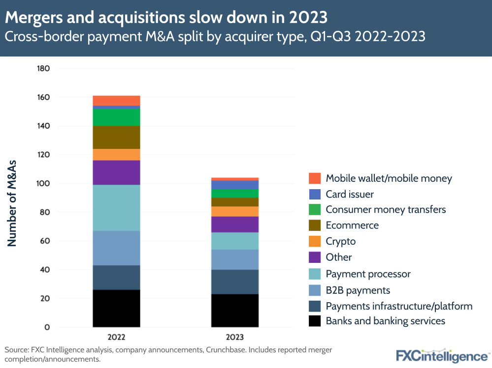 The upshot is that while a number of high-value acquisitions have taken place this year, there have been fewer of them across several different categories and countries, which indicates that the cross-border payments space is aligned with a global M&A trend that many outlets observed looking at the first half of the year.