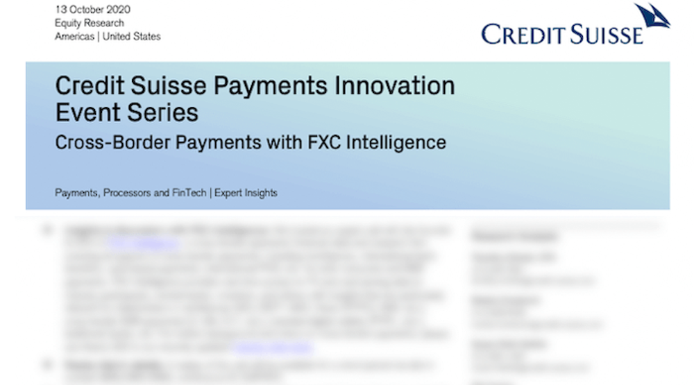 Credit Suisse Payments Innovation Event with FXC Intelligence
