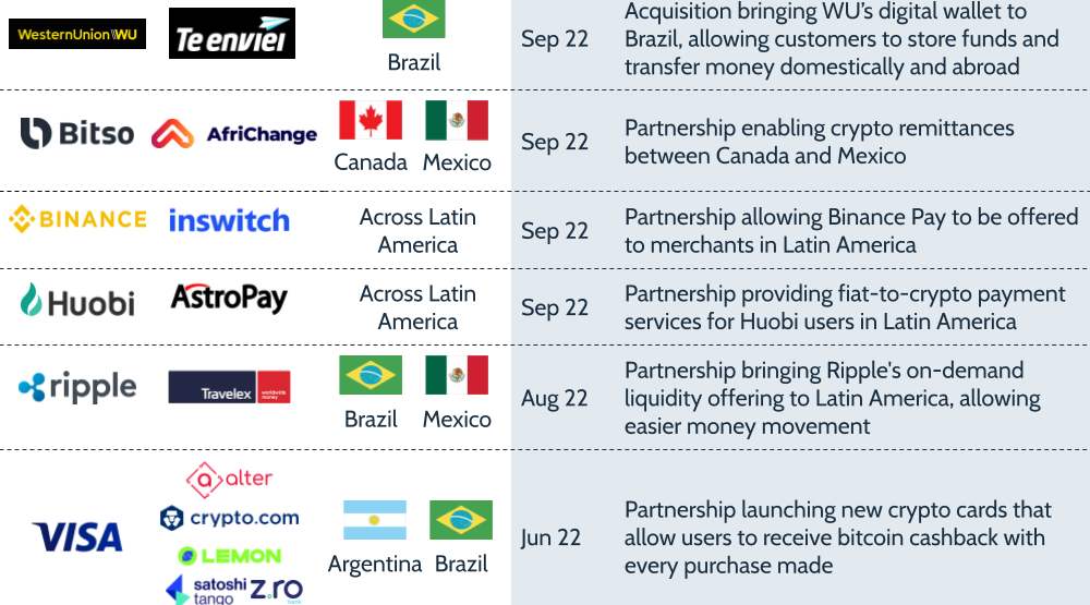 Key partnerships for cross-border payments in Q3 2022